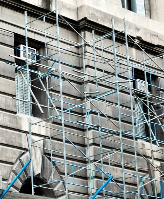 Reparación y pintura exterior de edificios, trabajos con silleta o balancines.